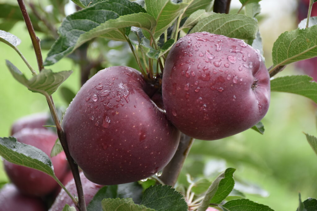 A semi spur type variety has an intense, vivid, dark red color with good productivity, developed from mutation of Hapke in South Tyrol, Italy. Suitable for low to mid-elevation. Galas, Golden Delicious, and Grany Smith are good pollinators. Licensed by Kuku.