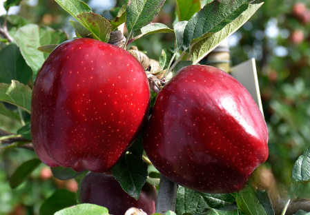 Spur character, very high yields, and early entrance in production. Harvest time slightly before the other Red delicious clones. Really good colouration, also under unfavorable conditions. The flesh is white, firm, and crispy. Pollinated by Grany Smith, Galas, Golden Delicious.