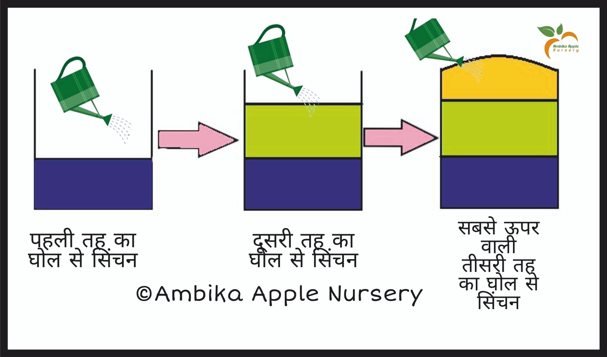 इस रसायन की खरीदारी करते वक़्त यह बात जरूर ध्यान में रखें कि इसमें सक्रिय तत्व (active ingredient) की मात्रा कम से कम 50% हो। अतः 10 मिली इस रसायन को प्रति लीटर पानी में घोल लें। तत्पश्चात पौधे के लिए खोदे हुए गड्डे को 1 फुट तक मिट्टी और गोबर की खाद से भर दें और Silver Hydrogen peroxide और पानी से बने घोल से इस 1 फुट की तह को सिंचित कर लें। इसके लिए 3 लीटर घोल की आवश्यकता रहती है। अब दूसरी 1 फुट की तह को फिर 3 लीटर के घोल से सिंचित करें। इस प्रकार तीसरी व अंतिम तह को 3 लीटर के घोल से सिंचित करें ।
